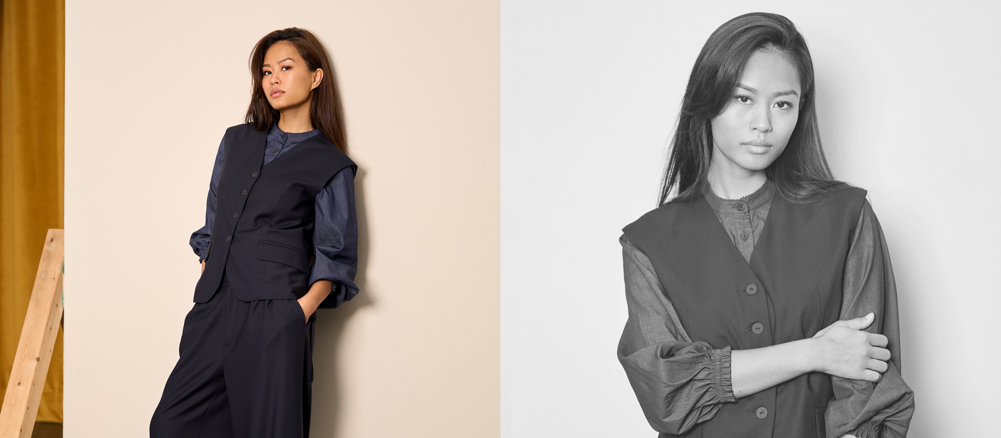 Dieses Westenkleid steht für zeitlose Klarheit, eine reduziert gestaltete Form und hochwertige Verarbeitung.