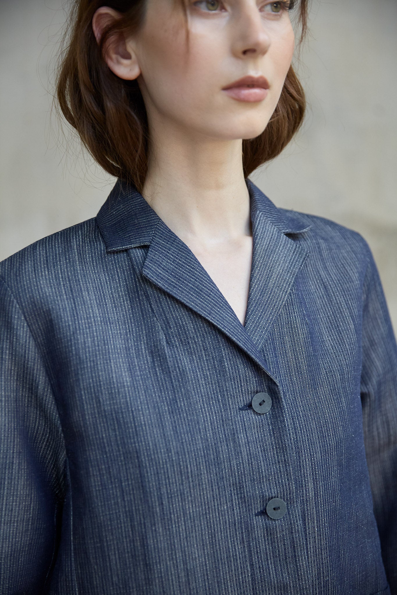 Die Blazerjacke Fiona überzeugt durch eine klar taillierte Form mit geschwungenem Saum. Reduzierte Details wie der kleine Reverskragen unterstreichen ihren zeitlos-modernen Charakter.