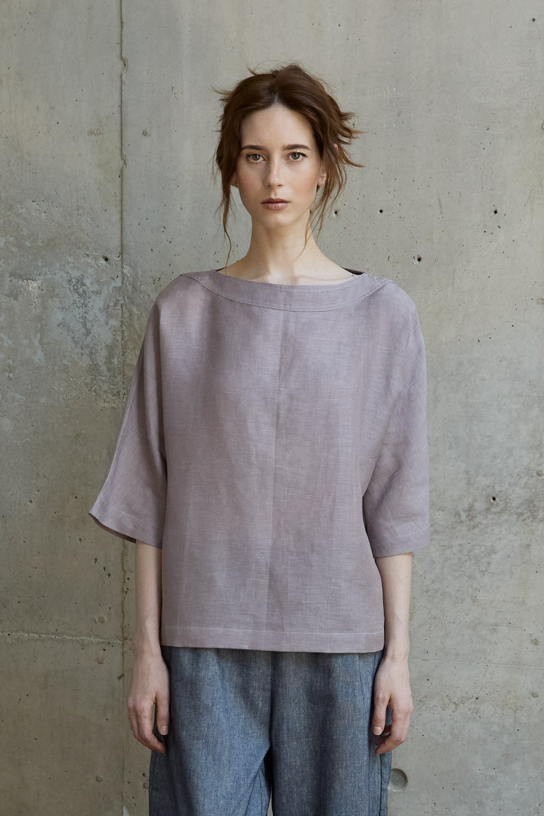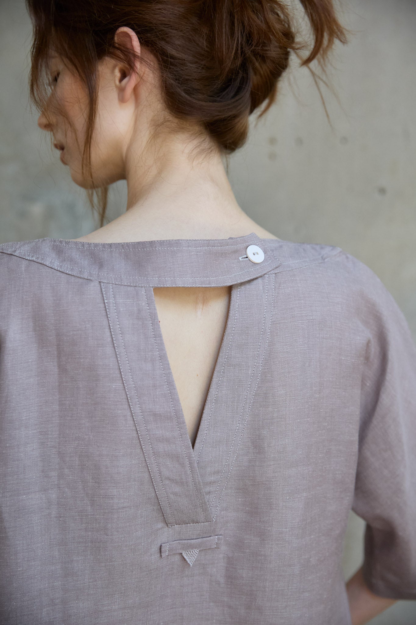 Bluse Margeaux ist eine raffinierte Interpretation des klassischen T-Shirts. Der weite U-Boot-Ausschnitt und der rückseitige V- Ausschnitt mit handgefertigtem Papierknopf verleihen der soften Silhouette eine ruhige, besondere Note.